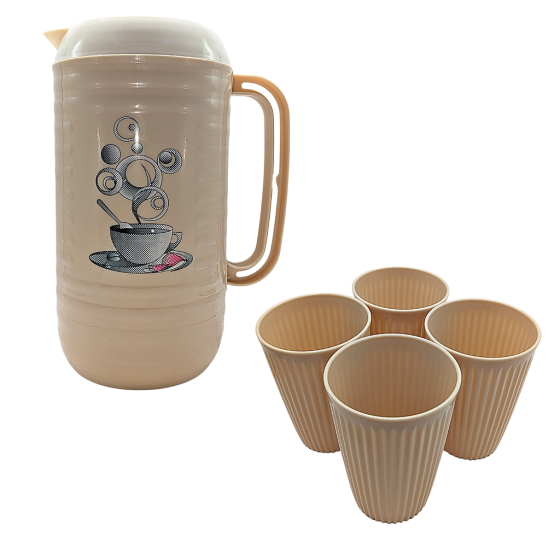 Glaciere + 4 tasses beige, facile a nettoyer ,résistant aux chocs et résistant à la chaleur. Cet ensemble convient parfaitement à la vie quotidienne, mais reste élégant et raffiné, adapté au divertissement.